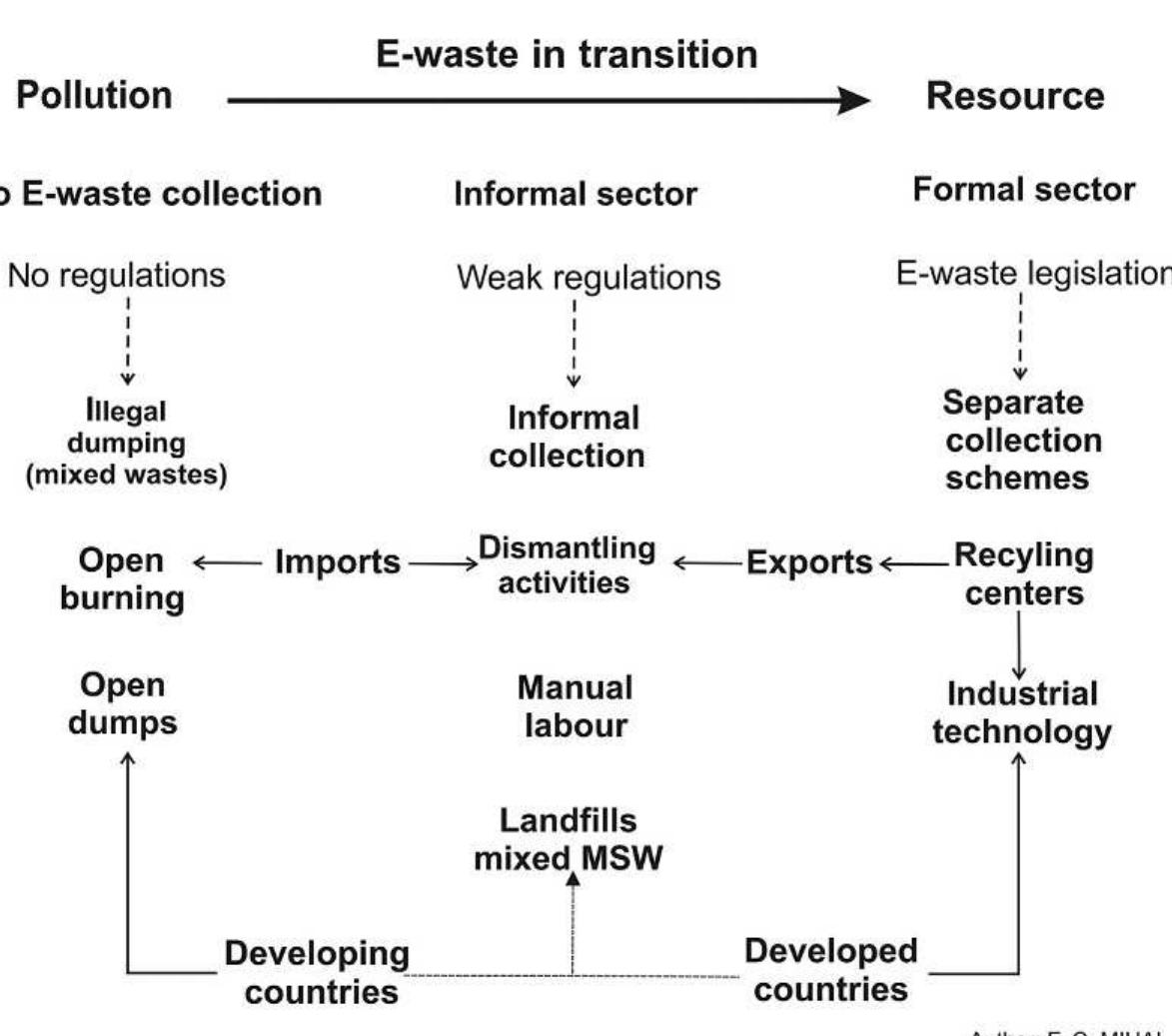 The chapter examines the problem of e-waste movements among countries around the world, particula... more The chapter examines the problem of e-waste movements among countries around the world, particularly from high-income economies with advanced waste management systems towards low and middle-income countries with serious public health and environmental repercussions. Despite the fact that the Basel Convention forbids certain hazardous waste streams to be exported into countries with poor waste management facilities, the environmental pollution associated with e-waste flow reaches alarming levels due to illegally or legally importing large amounts of waste continuing unbated. The chapter investigates the gaps in the e-waste management system which led to the transboundary movements of e-waste items supported by academic literature review. The chapter highlights the main challenges of e-waste exportation and importation issues in some major geographical areas such as Europe, Asia-Pacific, Africa, and North America and how unsound waste management practices feed a new “colonization” form in the twenty-first century. Best policies and practices are revealed to mitigate the illegal traffic of the e-waste flow or “ second hand” electronic goods towards poorer countries. The expansion of urban mining practices and the circular economy paradigm should reduce the global traffic of e-waste flows combined with the improvement of the Basel Convention content and the ratification process.